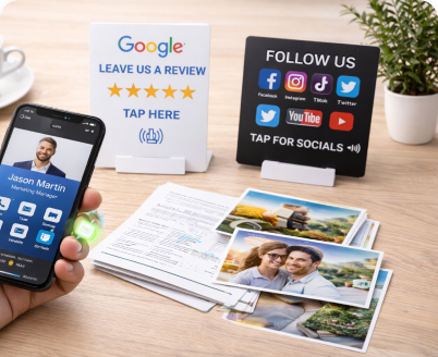 Boost Reviews with our NFC One Tap Google Card, Plate & Stand & Multiply Followers with our Social Cards.